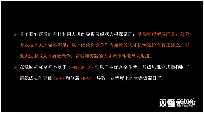 “雙童”原來(lái)落后的考核制度已經(jīng)形成了慣性,從而導致我們落后的考核和用人機制,導致基層管理斷層,部分專(zhuān)業(yè)技術(shù)人員儲備不足,以績(jì)效和競爭為衡量人才機制的這樣一種模式還沒(méi)有真正建立,以至無(wú)法形成人才有效競爭。