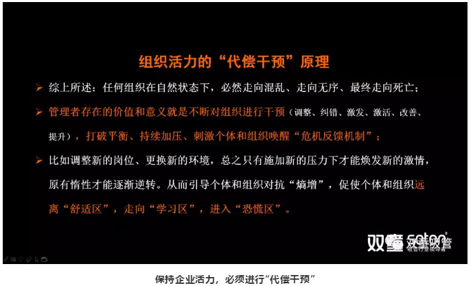 而避免“熵增”的唯一方法就是持續開(kāi)放和組織干預,從而打破平衡,持續加壓、刺激個(gè)體和組織喚醒“危機反饋機制”,這也是管理者的存在的唯一價(jià)值!