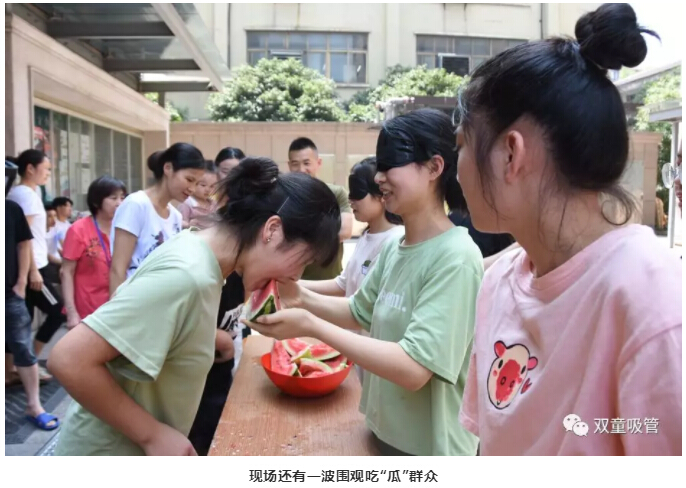兩人一組,一個(gè)蒙眼喂西瓜,一個(gè)吃西瓜,聽(tīng)起來(lái)十分簡(jiǎn)單,但也看雙方的配合是否默契?,F場(chǎng)相互比拼的緊張氣氛,看得所有人都倒吸一口氣!不過(guò),這位童鞋可真賣(mài)力!