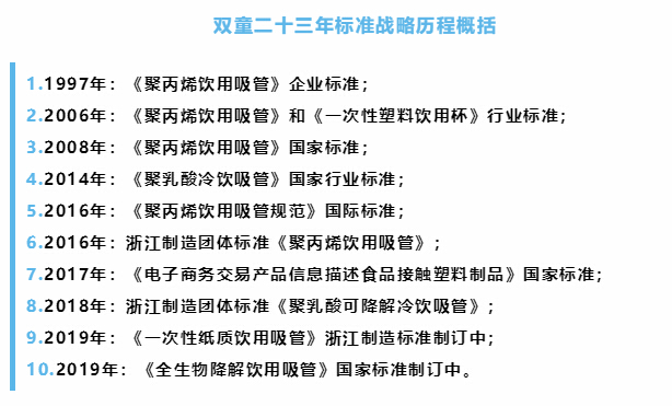 “雙童”就是打破了“一根吸管”質(zhì)量不重要,不值得做標準的“隱含假設”,通過(guò)要素分解、擇優(yōu)選擇、重新組合,持續不斷地抓質(zhì)量、訂標準,并不斷優(yōu)化完善,在產(chǎn)品之外疊加了更多的屬性,轉變?yōu)樯唐?,從而?/span>“一根吸管”做到極致!