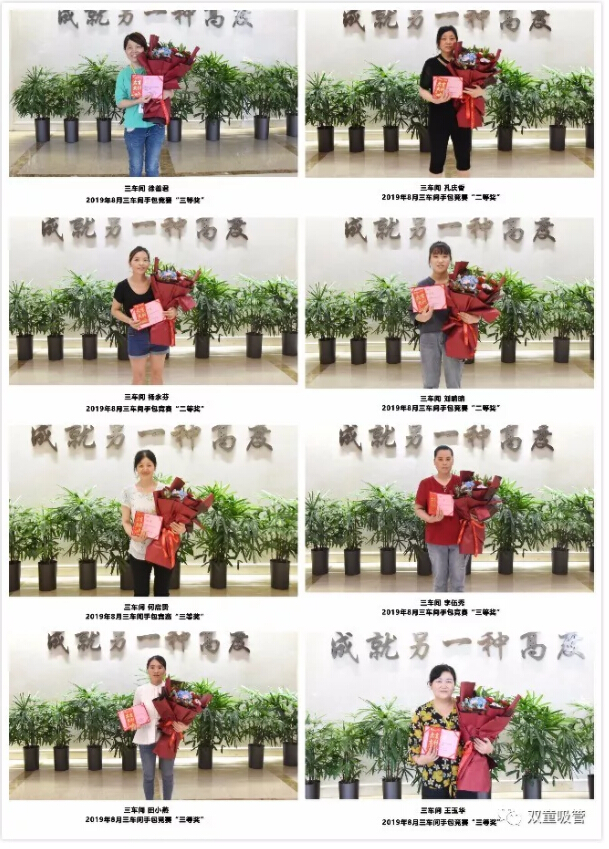 2019年8月三車(chē)間手包競賽一等獎:李梅二等獎:楊蓮英、孔慶香、楊永芬、劉晴晴三等獎:何啟貴、李伍秀、田小燕、王玉華、徐善君