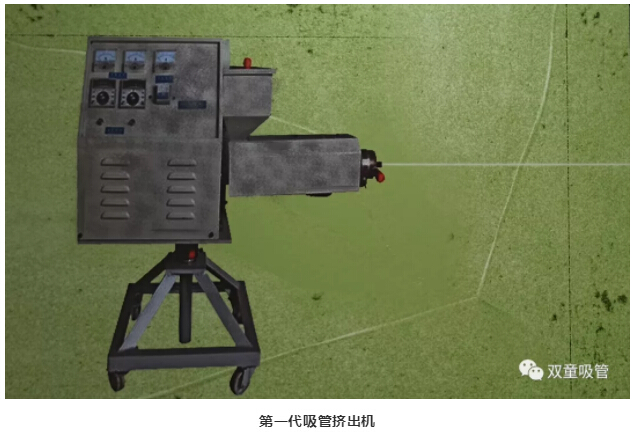 當當當!吸管妞大揭秘啦!下面這臺就是上世紀七十年代采用的第一代塑料吸管擠出機。將塑料顆粒高溫融化后擠出、冷卻、切割而形成一根根的塑料吸管。