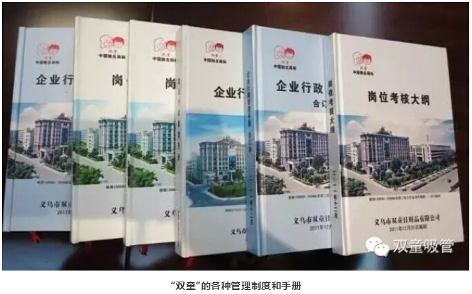 2005年開(kāi)始,“雙童”陸續推行了《企業(yè)衛生管理手冊》、《寢室管理大綱》 和《企業(yè)行政管理手冊》、《崗位考核大綱》等一系列衛生和作業(yè)規范文件,逐步轉向精細化管理。