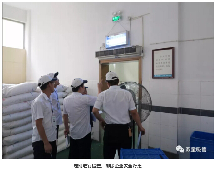 此次重大火災事故發(fā)生后,瞬間引發(fā)了“雙童”強烈危機感,所有“雙童”人深刻意識到安全的重要性!安全工作已經(jīng)迫在眉睫,雖然事故發(fā)生后恰逢國慶員工放假期間,“雙童”安全工作也在緊鑼密鼓的開(kāi)展,廠(chǎng)區內安排了值班人員,每天開(kāi)展安全排查等工作,進(jìn)行自查自糾,并邀請專(zhuān)家到公司做安全指導工作?!半p童”在安全排查期間,共計發(fā)現了39項安全隱患,明確責任人和改進(jìn)期限,杜絕安全隱患!