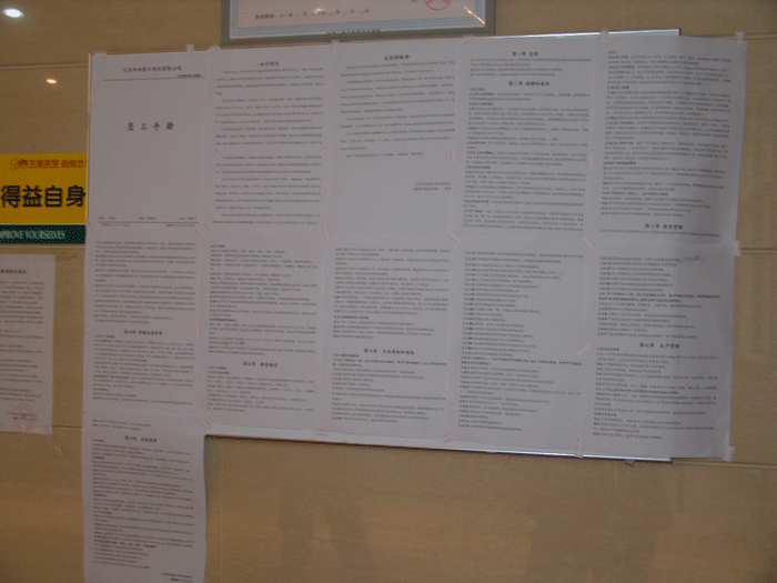 這是繼2007年12月29日下午工會(huì )代表和職工代表關(guān)于討論《員工手冊》條款的第二次會(huì )議,《員工手冊》的草稿經(jīng)過(guò)12月30日至1月2日4天時(shí)間在宣傳欄內公布張貼,讓全體員工參與了《員工手冊》的充分討論,按照工會(huì )代表和職工代表的意見(jiàn)進(jìn)行修改完善。本《員工手冊》的出臺充分發(fā)揮了工會(huì )組織的作用,也讓職工代表們完全體會(huì )到每位員工都享有參與公司制定文件的權力。