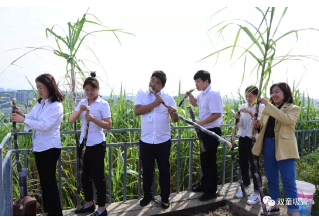 每逢甘蔗季,來(lái)“雙童”參觀(guān)的客人們也忍不住下到甘蔗地里親自收割甘蔗,品嘗“雙童”的果實(shí)!