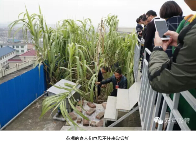 瞧!“雙童”屋頂菜園里的甘蔗也迎來(lái)了豐收季,一排排粗壯的甘蔗,紫色的枝干和清悠悠的葉子整齊劃一的在風(fēng)中搖擺,誘人極了!