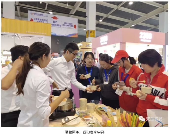 聽(tīng)過(guò)“雙童”樓仲平的詳細解釋后,不僅采訪(fǎng)記者們紛紛點(diǎn)贊,而且來(lái)往客商們也表示:這款吸管是用淀粉做的,是環(huán)保的,真的不錯!