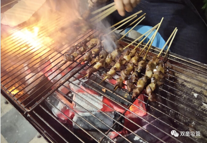 大家圍坐在烤爐前爭當“燒烤小販”,為壽星們進(jìn)行服務(wù)。大伙手上的肉串還沒(méi)吃完,“燒烤小販”們已經(jīng)笑瞇瞇地把新烤好的肉串奉上了,吃都來(lái)不及,這是什么節奏!