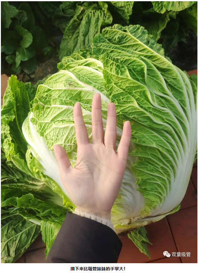 “雙童”新廠(chǎng)房種的白菜不僅數量多,個(gè)頭也非常大,到底有多大呢?只需一棵,能吃一周!什么,你不信?讓我們來(lái)比一比!