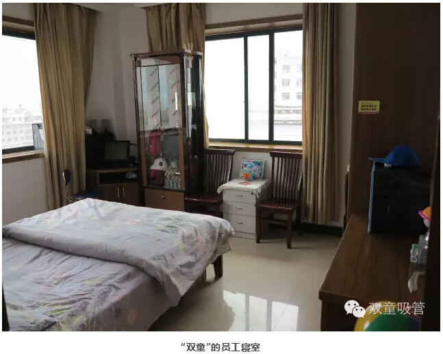 另外,在“雙童”,我們不僅給所有員工提供免費的三星級寢室,提供優(yōu)質(zhì)免費的餐飲服務(wù)。還給行政員工、夫妻工和多年老員工免費配置獨立房間和套房,歡迎行政員工的家屬到公司入住,也鼓勵員工的家屬也在餐廳就餐,員工家屬還能享受半價(jià)優(yōu)惠哦!