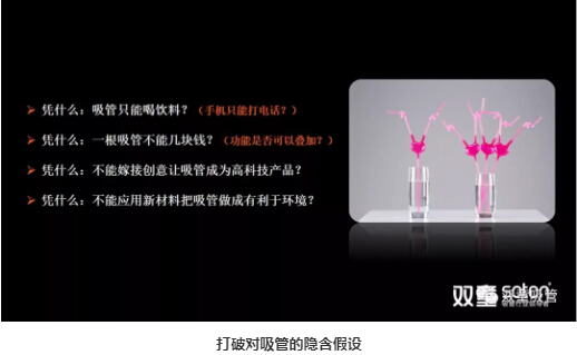 我們再回到吸管的案例上,雙童”在二十多年前就打破了隱含假設,不斷進(jìn)行內部追問(wèn)和反思:吸管為什么一定是用來(lái)喝飲料?吸管為什么一定只能賣(mài)幾厘錢(qián)?吸管為什么一定要塑料材質(zhì)?