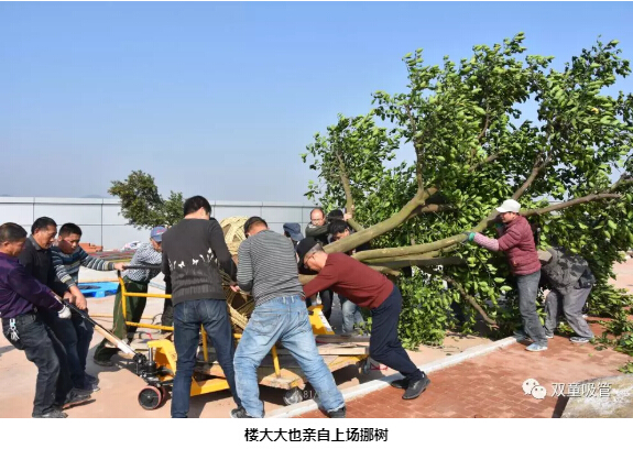 不過(guò),在栽種最后兩棵胡柚時(shí),可是召集了二三十位“大力士”在樓頂上接應,一同栽種。光是栽種這可胡柚樹(shù)就用了大半天時(shí)間。在這個(gè)過(guò)程中,連樓大大也親自上陣出力了!