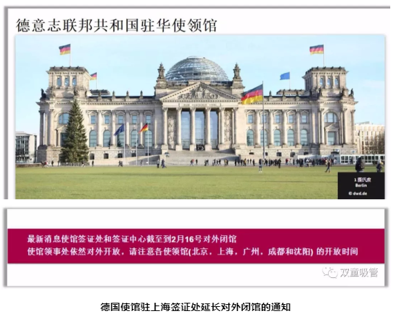 但因春節期間突如其來(lái)的肺炎疫情影響,各國簽證中心都暫停了辦理簽證業(yè)務(wù)并拒絕中國公民入境。1月23日,上海簽證中心通知德國使館駐上海簽證處通知簽證中心截止至2月16日對外閉館,“雙童”的簽證被扣置。