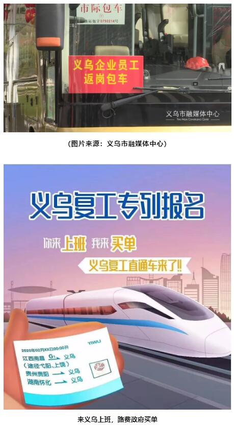 開(kāi)通義烏復工直通車(chē),員工路費由政府買(mǎi)單;
