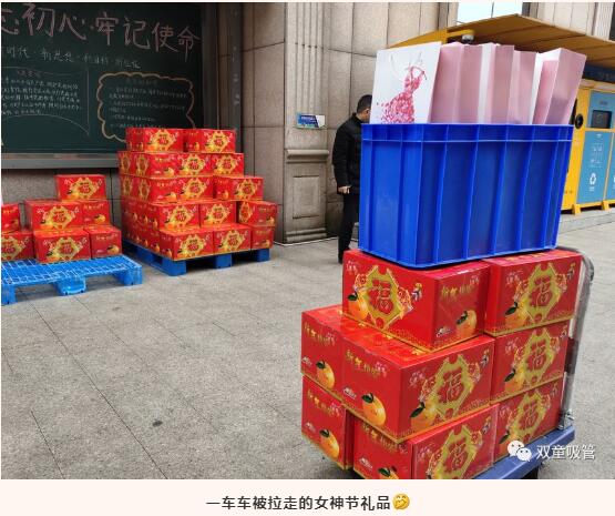 一箱箱椪柑,一套套精美小禮物,看的男同胞們都直呼想要呢。不過(guò),這份專(zhuān)屬于女職工們的福利,快看我們各位女神抱著(zhù)禮物開(kāi)心的樣子,別急別急,留一套給吸管妞哈!