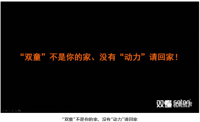 實(shí)際上,這句話(huà)早在去年8月企業(yè)發(fā)動(dòng)第一次重大改革時(shí)就被提出,并持續作為企業(yè)的重點(diǎn)宣傳標語(yǔ)。接下來(lái),吸管妞將對這句話(huà)進(jìn)行重點(diǎn)剖析,讓大家明白為何“‘雙童’不是你的家、沒(méi)有‘動(dòng)力’請回家”。