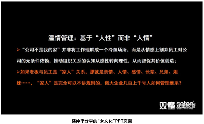 再者,如果老板與員工是家人關(guān)系,那就只講親情、人情、感情,不講規則。試想一下,偌大一個(gè)企業(yè),幾百上千號人都是“家人”關(guān)系,組織應該如何管理維系?