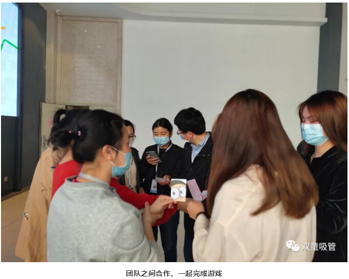 每周五,“雙童”的早會(huì )主題是偏輕松化的——團隊游戲。大家一起團隊合作完成游戲,在娛樂(lè )的過(guò)程中,也能更進(jìn)一步的促進(jìn)團隊間的默契與合作能力!