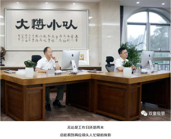 特別是在“雙童”新建二期廠(chǎng)房期間,無(wú)論是周末還是節假日,總能在公司里看到樓仲平及總經(jīng)理李二橋的身影,對他們而言,“白+黑”,“5+2”是再正常不過(guò)的事了,特別是樓仲平時(shí)常忙得連吃飯都沒(méi)有時(shí)間,往往點(diǎn)個(gè)外賣(mài)邊吃邊工作了事。