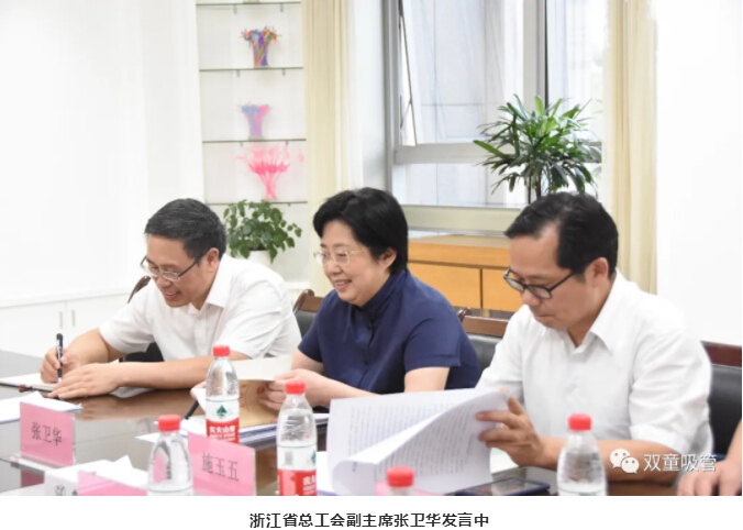不知不覺(jué)中,浙江省總工會(huì )副主席張衛華一行在“雙童”的考察調研就要結束了。調研過(guò)程中,“雙童”目前的產(chǎn)業(yè)工人隊伍建設改革工作得到了調研小組的認可和肯定。