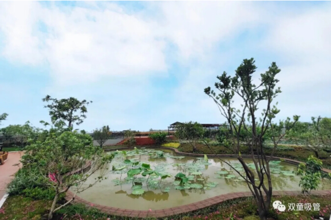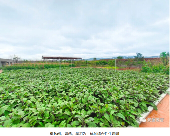 游學(xué)第六站,是“雙童”空中生態(tài)園。讓你領(lǐng)略什么是空中魚(yú)塘、空中藕塘、空中籃球場(chǎng),還有栽在屋頂的200多棵水果樹(shù),以及幾十個(gè)品種蔬菜……這里是集休閑、娛樂(lè )、學(xué)習為一體的空中生態(tài)園,