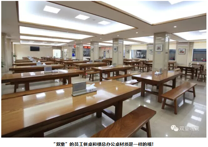 因此,“雙童”的員工餐廳配備了優(yōu)質(zhì)硬件,每一張餐桌重達四五百斤,由“木中之王”的柚木定制而成,兩三年油漆刷一次就和新的一樣,然而這個(gè)餐桌再過(guò)50年還會(huì )越來(lái)越值錢(qián)。