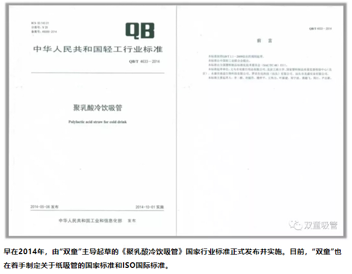 此刻,當人們意識到塑料產(chǎn)業(yè)面臨徹底顛覆,環(huán)保產(chǎn)品是未來(lái)發(fā)展趨勢時(shí),“雙童”早已在行業(yè)變革前做好了準備,從十多年前開(kāi)始研發(fā)環(huán)保吸管,還主導制定環(huán)保吸管的相關(guān)標準,緊握住了環(huán)保吸管產(chǎn)品的主動(dòng)權和話(huà)語(yǔ)權!