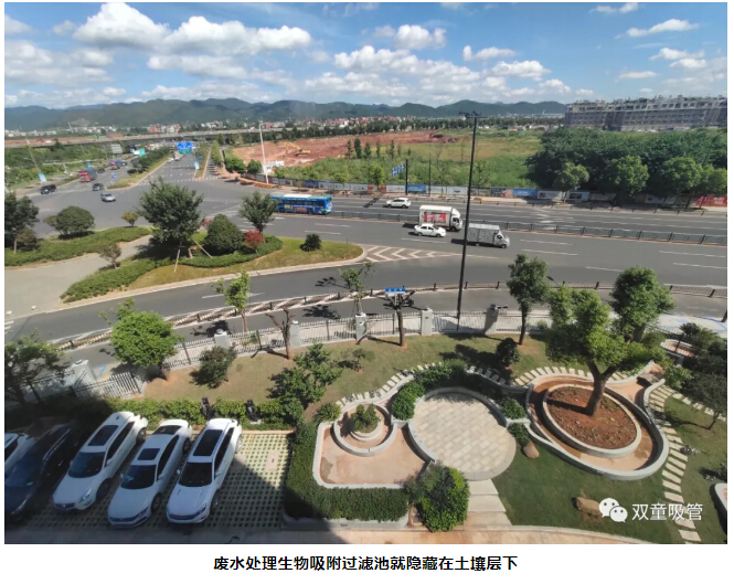 在這個(gè)過(guò)程中,員工日常生活中所產(chǎn)生的廢水過(guò)濾后,會(huì )流向生物吸附過(guò)濾池中,通過(guò)過(guò)濾池上栽種的樹(shù)木根須對水中的物質(zhì)、養分進(jìn)行再次吸附處理,這不僅能再次過(guò)濾處理廢水,同時(shí)也能樹(shù)木生長(cháng)的越來(lái)越好。