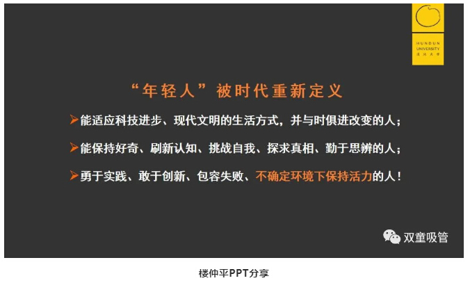 所以,這些年來(lái),樓仲平一直堅持向年輕人學(xué)習,創(chuàng )建與年輕人對話(huà)和溝通的能力,永遠將自己定位在25歲,緊追時(shí)代步伐,不讓自己成為時(shí)代的“棄兒”!
