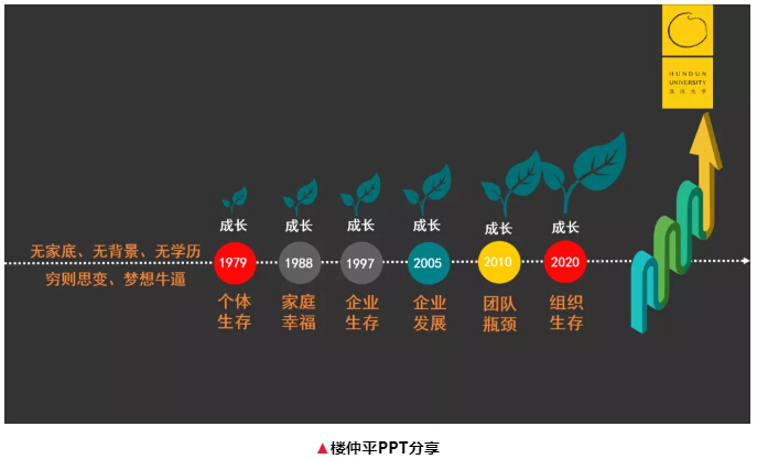 萬(wàn)物之中成長(cháng)最美、對于創(chuàng )業(yè)者(或企業(yè))來(lái)說(shuō)沒(méi)有所謂的成功、只有所謂的成長(cháng)!在課程分享中,樓仲平分享了自己如何突破原來(lái)的認知瓶頸一步步成長(cháng),并引導“雙童”打開(kāi)自我設限的產(chǎn)業(yè)天花板,打開(kāi)團隊與企業(yè)共同成長(cháng)的傳統管理枷鎖,從而在外部環(huán)境持續動(dòng)蕩下“活下去"!