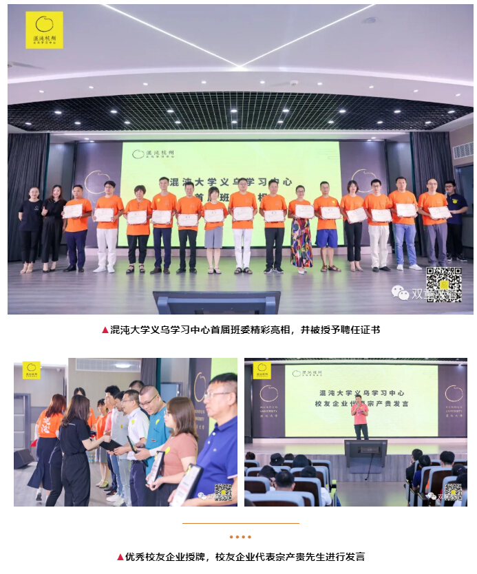 混沌大學(xué)義烏學(xué)習中心成立發(fā)布會(huì )由混沌大學(xué)義烏學(xué)習中心主辦,義烏市雙童日用品有限公司承辦,混沌大學(xué)杭州分社、義烏工商職業(yè)技術(shù)學(xué)院雙童管理學(xué)院協(xié)辦,聚集了混沌大學(xué)杭州分社社長(cháng)及老師、義烏學(xué)習中心班委、學(xué)員及來(lái)自義烏創(chuàng )新創(chuàng )業(yè)人士等600余一同見(jiàn)證此次盛會(huì )。