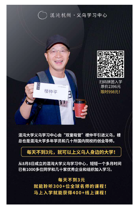 此刻都擁有了同一個(gè)身份——“混沌大學(xué)在讀生”,他們在混大義烏的線(xiàn)下課堂中彼此熟悉、彼此認可、互相鏈接、協(xié)同成長(cháng)。