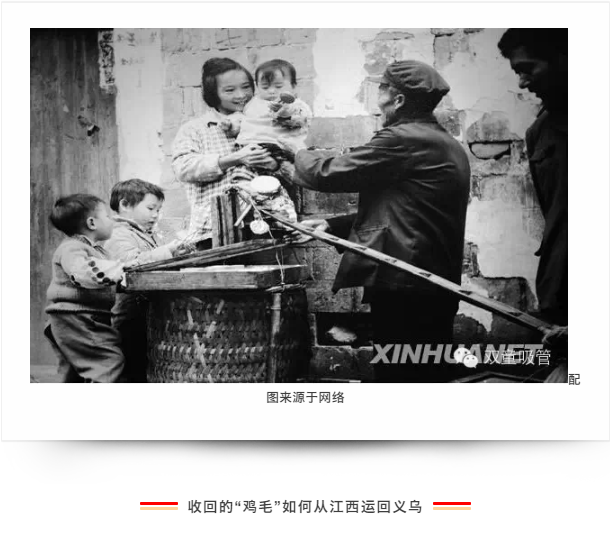 從1979年開(kāi)始,我跟隨著(zhù)爸爸在江西弋陽(yáng)開(kāi)始挑貨郎擔,每個(gè)春節能換回來(lái)幾千斤的“雞毛”我們會(huì )把換回來(lái)的“雞毛”暫存在老表家里結束后再用板車(chē)拉到火車(chē)站托運回義烏。