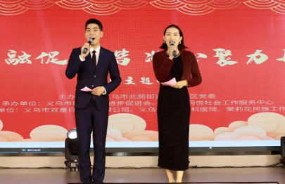 12月29日晚,隨著(zhù)夜幕的降臨,雙童二期新廠(chǎng)區六樓的大會(huì )堂里燈火璀璨、熱鬧非凡,不時(shí)傳來(lái)陣陣歡呼和掌聲。原來(lái)是義烏市北苑街道四季社區黨委慶元旦晚會(huì )正在進(jìn)行!由義烏市北苑街道四季社區主辦,義烏市雙童日用品有限公司有限公司協(xié)辦的“同心共融促和諧,凝心聚力再出發(fā)”元旦主題晚會(huì )在“雙童”大會(huì )堂精彩上演啦!隨著(zhù)兩位主持人的開(kāi)場(chǎng),精彩的晚會(huì )也拉開(kāi)了帷幕!在晚會(huì )開(kāi)始前,首先開(kāi)始的是由社區居民帶來(lái)的暖場(chǎng)節目——大鼓《開(kāi)門(mén)紅》。節目充分展現了四季社區的居民們對藝術(shù)的熱愛(ài),也贏(yíng)得了臺下幾百位“雙童人”的共鳴,贏(yíng)得了掌聲陣陣!