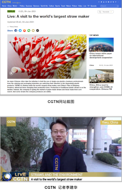 無(wú)獨有偶,央視CGTN頻道在上周五來(lái)到“雙童”,針對這次沸沸揚揚的“禁塑令”話(huà)題展開(kāi)了為時(shí)一個(gè)多小時(shí)的現場(chǎng)直播采訪(fǎng),在CGTN所有海內外官方新媒體平臺上現場(chǎng)展示中國吸管博物館中的近千種吸管產(chǎn)品,并聚焦在“雙童”的各類(lèi)環(huán)保吸管上進(jìn)行了重點(diǎn)報道!
