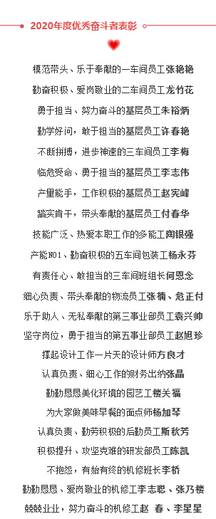 不平凡的2020年,從一開(kāi)始的疫情突發(fā),打亂了所有的工作計劃與安排,”雙童“從年前的開(kāi)工難招工難,再到后來(lái)的銷(xiāo)售難生產(chǎn)難,真可謂是關(guān)關(guān)難過(guò)關(guān)關(guān)過(guò),正是來(lái)自五湖四海的”雙童人“辛勤奮斗,才能讓”雙童“在這個(gè)特殊的時(shí)代繼續乘風(fēng)破浪,創(chuàng )造更多的輝煌!