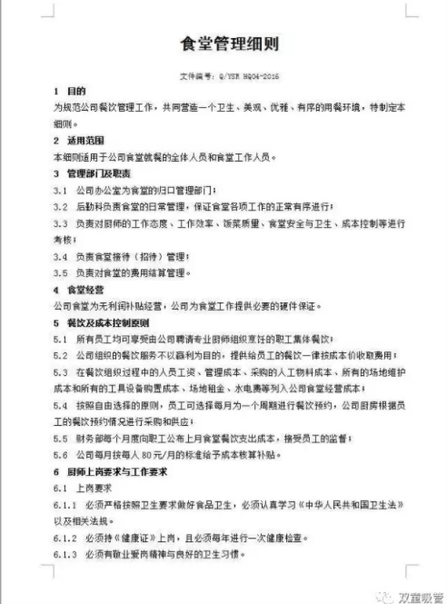 “雙童”食堂管理細則,涉及到餐飲管理的各個(gè)方面