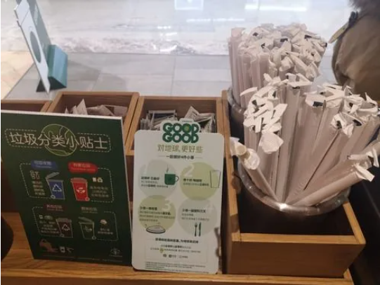 位于南京市的一家星巴克門(mén)店為消費者提供紙質(zhì)吸管