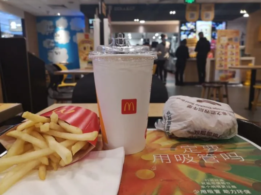 位于南京市建鄴區的一家麥當勞門(mén)店停用塑料吸管,消費者可通過(guò)新型杯蓋直接飲用冷飲