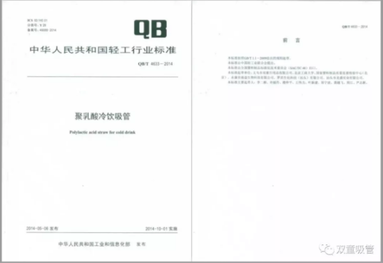 由“雙童”主導起草的《聚乳酸冷飲吸管》國家行業(yè)標準
