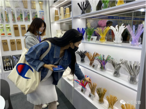 “雙童”展位上琳瑯滿(mǎn)目的吸管