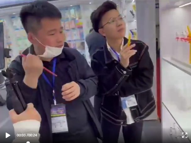 不只是“雙童”展位內部,展位的外圍也圍繞著(zhù)過(guò)往不斷的客商,這是怎么回事?