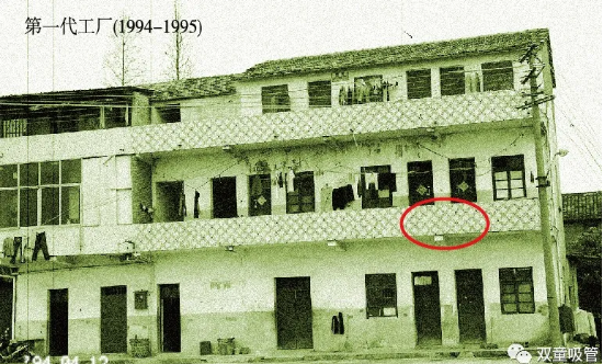 1994年4月5日,樓仲平夫妻在當時(shí)的義烏市福田鄉寺后盛村租用了兩間兩層(紅圈所示)的普通民房作為生產(chǎn)場(chǎng)地,邁開(kāi)了《吸管傳奇》創(chuàng )業(yè)的第一步。
