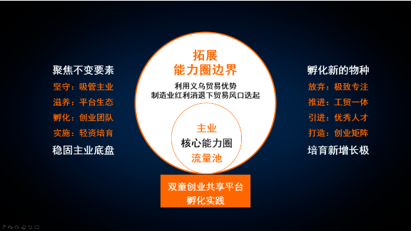 三是在主業(yè)務(wù)板塊及產(chǎn)業(yè)周邊形成創(chuàng )業(yè)生態(tài)后,引導核心成員向服務(wù)業(yè)拓展新的創(chuàng )業(yè)項目,既可以在人文教育,也可以在商業(yè)模式和產(chǎn)業(yè)技術(shù)上拓展創(chuàng )新創(chuàng )業(yè)項目輸出;