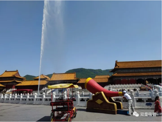 啊…… 咦?何人在此大聲喧嘩!遠遠的好像還有個(gè)噴泉?趕緊去看看,原來(lái)明清宮苑里還有喊泉呢!快來(lái)看看“雙童”人的功力如何!