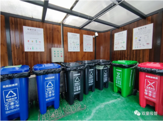 “雙童”垃圾投放房?jì)鹊睦?/span> “雙童”的后勤人員會(huì )在每天的8:00至10:00對垃圾房進(jìn)行整理。對于其中的可回收物,清潔員會(huì )進(jìn)行二次回收和變賣(mài),出售后的收入也將作為清潔員的獎金發(fā)放!