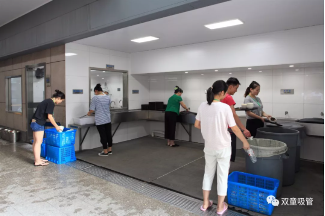 在“雙童”600余人就餐的員工餐廳里,濕垃圾也是“雙童”垃圾分類(lèi)經(jīng)的一大重點(diǎn)!“五個(gè)碗”是雙童員工的餐具標配,在每張餐桌上都擺放著(zhù)用餐規范的標語(yǔ)提示牌。