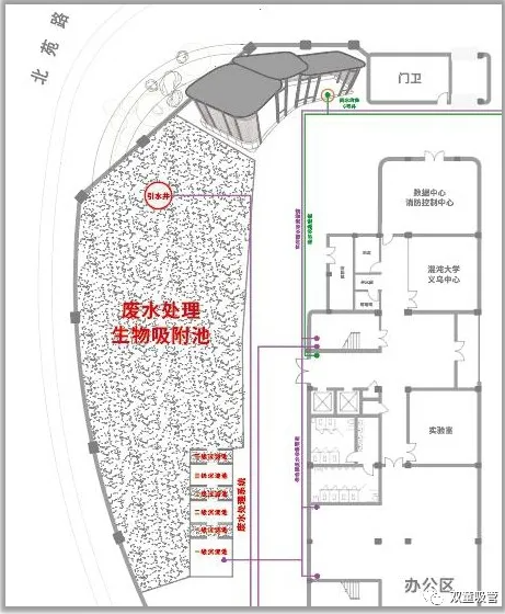 在這個(gè)過(guò)程中,員工日常生活中所產(chǎn)生的廢水過(guò)濾后,會(huì )流向生物吸附過(guò)濾池中,通過(guò)過(guò)濾池上栽種的樹(shù)木根須對水中的物質(zhì)、養分進(jìn)行再次吸附處理,這不僅能再次過(guò)濾處理廢水,同時(shí)也能讓樹(shù)木生長(cháng)的越來(lái)越好。
