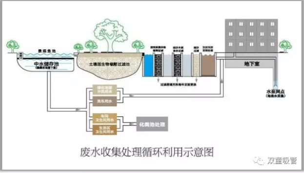 最后,經(jīng)過(guò)處理的水可以達到了三類(lèi)水的標準,不能直接飲用和觸碰皮膚,但可以用于廠(chǎng)區綠化噴淋、所有洗手間抽水馬桶沖洗用水和道路清洗。這讓員工日常生活中所產(chǎn)生的廢水不僅得到循環(huán)利用,而且還消滅了企業(yè)的廢水排放和污染,同時(shí)一年還能為企業(yè)節省了三百多萬(wàn)的費用,讓600人的工廠(chǎng)不用一噸自來(lái)水! “雙童”一期廠(chǎng)區:廢水收集處理循環(huán)利用示意圖